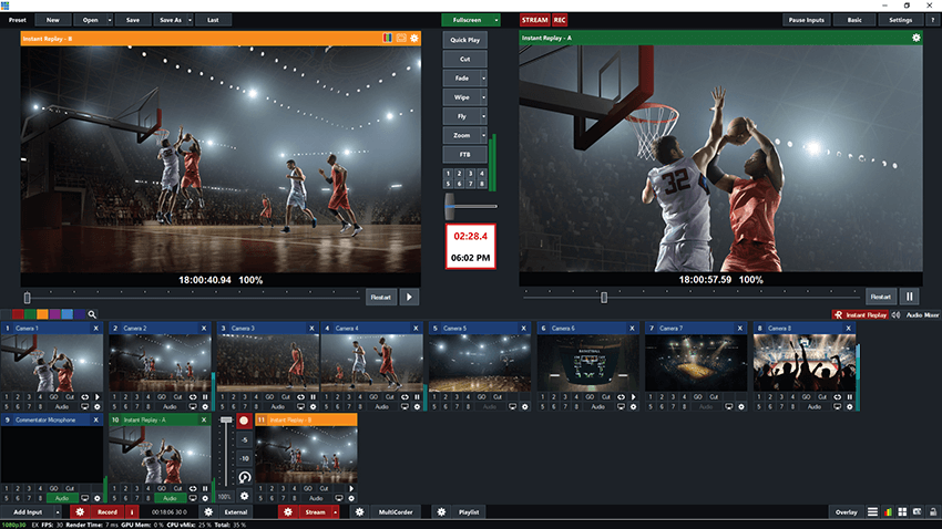 - Enhance your live sports productions with the power of instant replay! vMix Replay continuously records up to eight cameras simultaneously in full HD so operators can review the action and jump back to any point in the game all with real time control over camera angle and playback speed. 2 channel playback is also included with the ability to show audiences two camera angles side by side or in almost any arrangement you can think of.