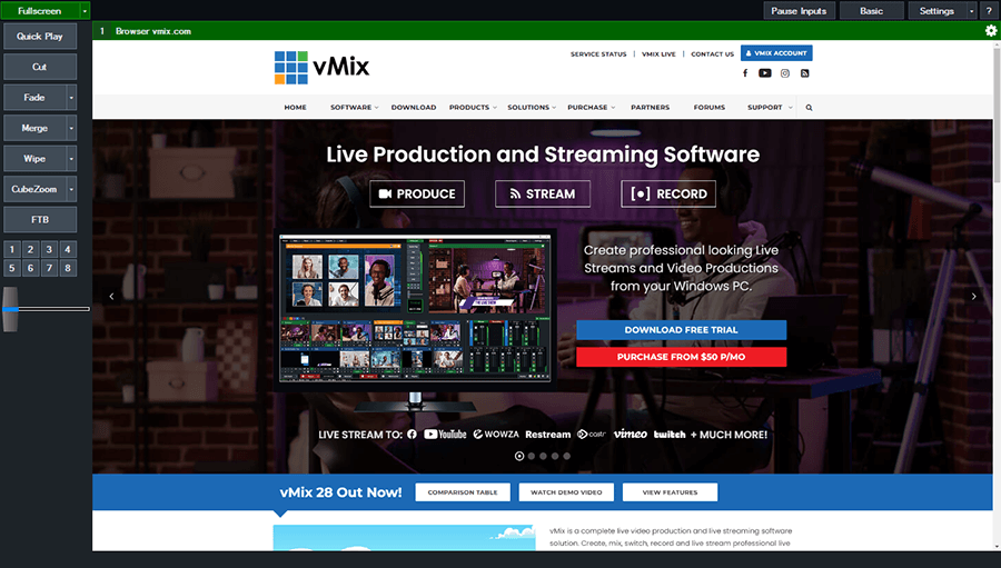 - No need for an additional computer just to bring in a browser, do it all through vMix!
