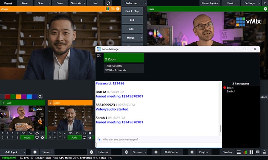 - vMix can become a participant in a Zoom meeting and access the raw video and audio feeds of all participants in up to 1080p HD.
